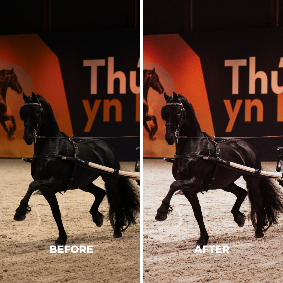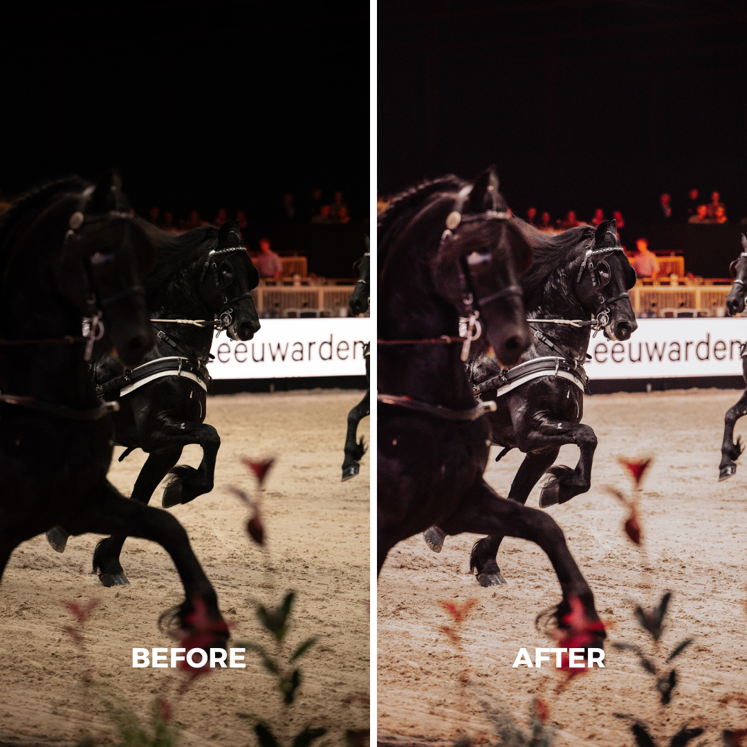 Breng de sfeer van binnenpistes of binnen in een stal op een unieke manier tot leven met deze Indoor Arena Lightroom-preset. Deze preset is ontwikkeld om jou te helpen met het geven van een mooie sfeer. De gele tinten zijn een beetje gereduceerd, en de schaduwen en de hooglichten wat warmer.