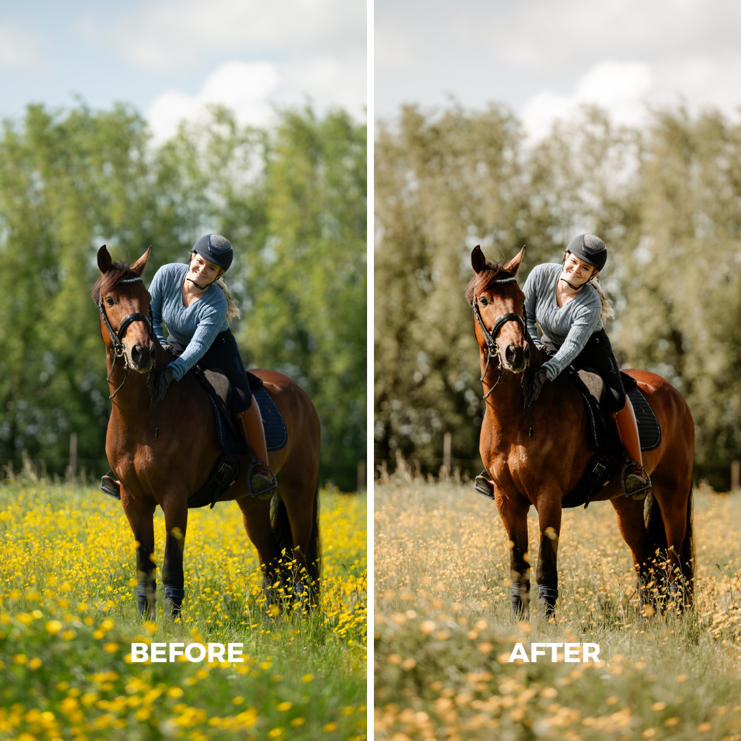 De naam zegt het al, met deze presets geef jouw foto's wat aardse tinten. Deze preset is perfect voor jou als paardenfotograaf om je foto's een unieke, natuurlijke, aardse tint te geven.
